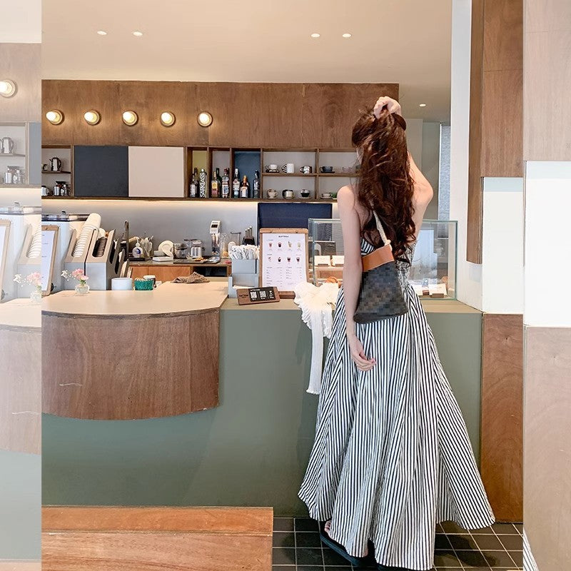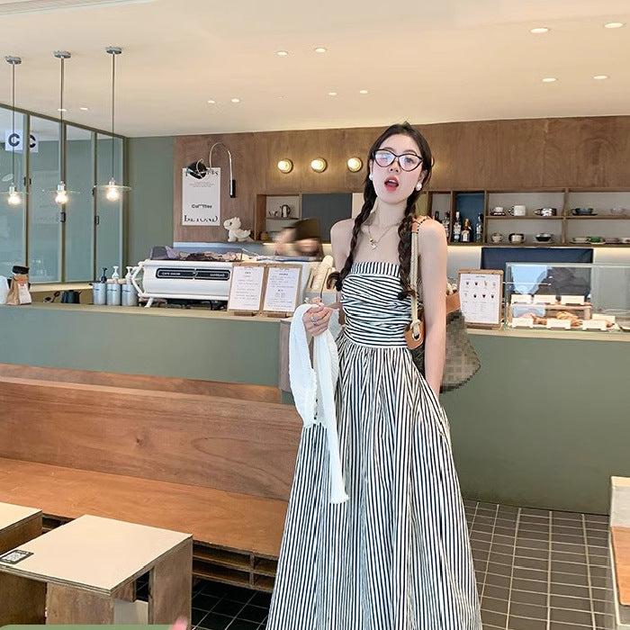 Tube Top Contrast Color Striped Shirt Dress Women's Summer
